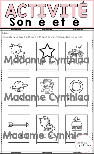 Feuille très simple dans laquelle l'élève doit indiquer s'il entend le son 'é' ou le son 'è' dans le mot.