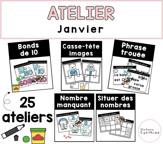Voici 25 ateliers pour le mois de janvier sous le thème du Monde polaire (1re année).