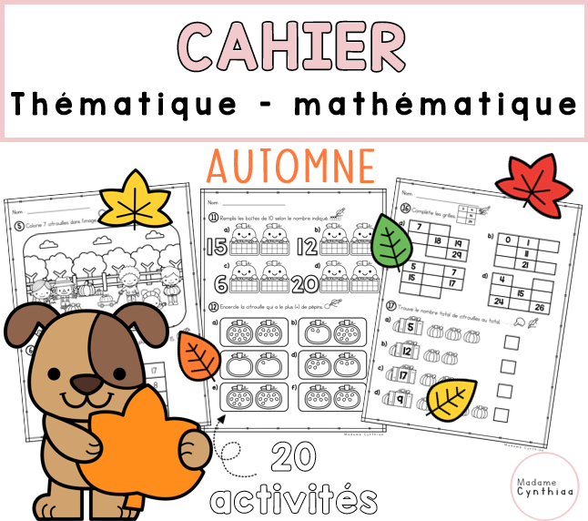 Cahier mathématique pour la 1re année sur le thème de l’automne.