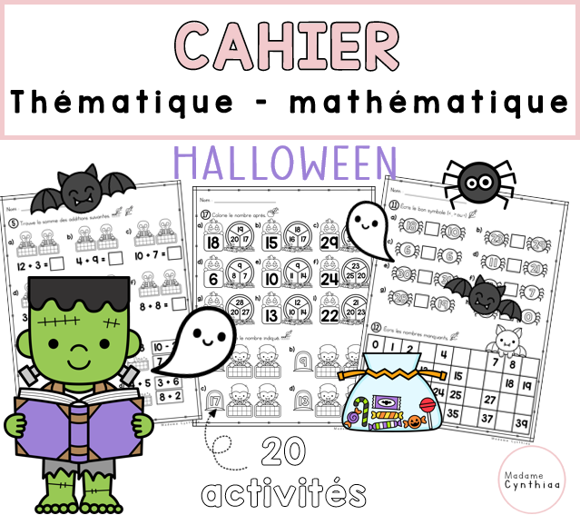 Cahier mathématique pour la 1re année sur le thème de l'Halloween.