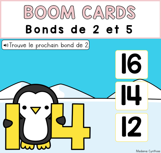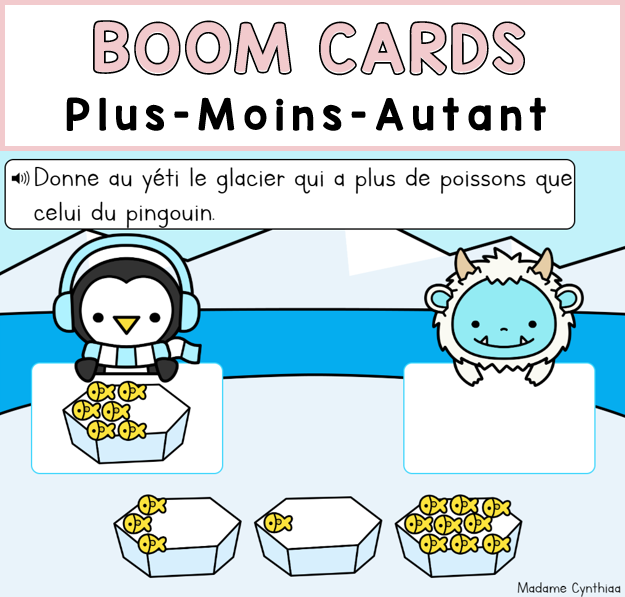 Boom Cards sur des notions en mathématiques et en français sur le thème du monde polaire (1re année).
